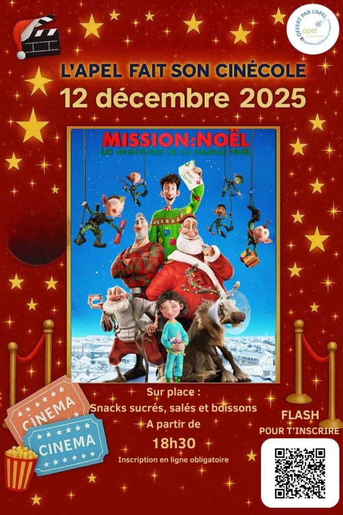 L’APEL est heureuse de vous convier vendredi 12 décembre 2025 à son Cinécole