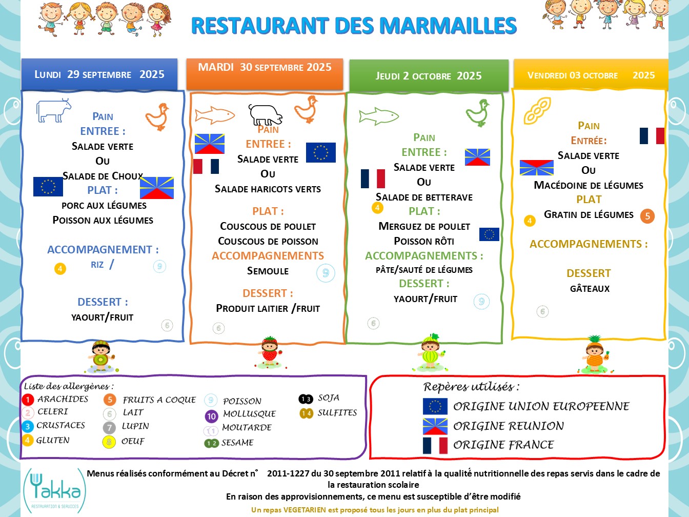 menu du 29 au 3 octobre 2025